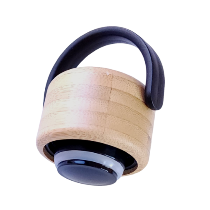 ترمس مياه أسود ناعم الملمس، بغطاء خشبي جذاب. اختيار رائع  للمدرسة أو للأندية الرياضية أو السفر مزينة بسلسة مفاتيح